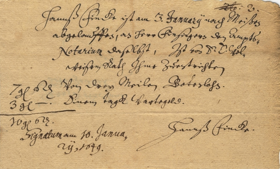 Das zeigt eine Botenlohnquittung vom 10. Januar 1649 über einen Botengang am 3. Januar 1649 von Dresden nach Meißen; Vermerk „7 Gr. 6 Pf. von drey Meilen Botenlohn“; dies entsprach 2½ Groschen pro Meile. Für das Warten des Boten auf die Rückantwort wurden weitere 3 Groschen Wartegeld für einen Tag angesetzt.