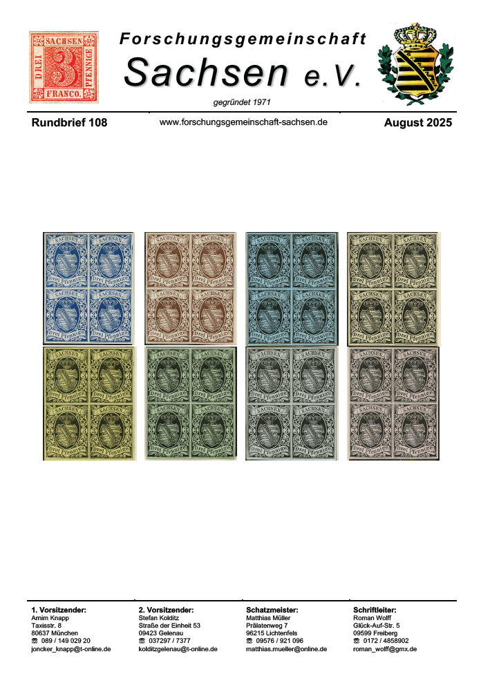 Unser Rundbrief erscheint zweimal pro Jahr und beinhaltet über 100 Seiten Fachbeiträge pro Rundbrief. Dabei werden die verschiedensten Themen der Sachsenphilatelie behandelt: Marken und Ganzsachen, Postgeschichte, Social Philatelie und vieles mehr …